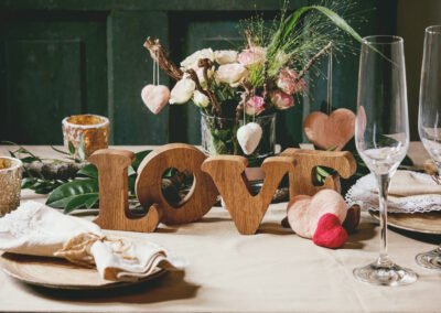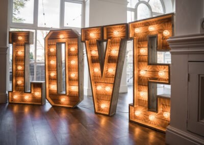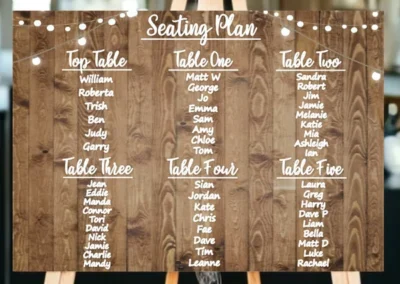 From large light up lettering, personalised engraved place settings to entire seating plans carved on to timber, we can make your decorations truly unique.  Get in touch for a quote for all your wedding day décor needs and we’ll work with you to give you exactly what you desire for the biggest day of your life so far.